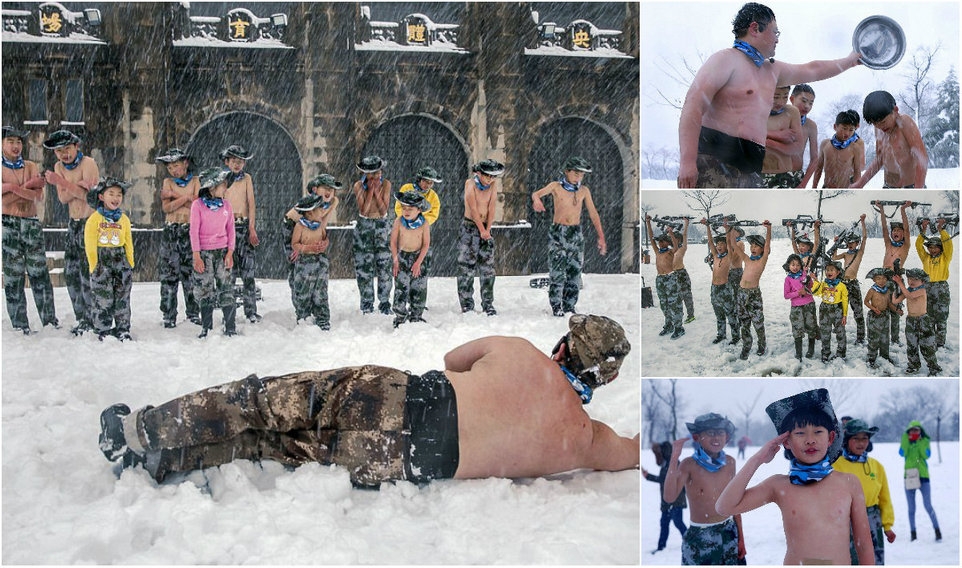 0 Настойчивый отец из Китая стал известен в 2012 году после того, как заставлял своего четырехлетнего сына бегать по снегу в нижнем белье. He Liesheng по прозвищу "Eagle Dad" (орел-отец) организовал детский лагерь, где ежегодно помогает детишкам закаливать тело и дух. В этом году в лагере 13 детей от 4-х лет, восемь мальчиков и три девочки. Они бегают полураздетые под снегом, обливаются холодной водой, а затем пьют теплый отвар из трав.