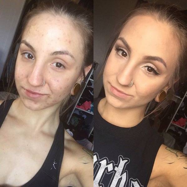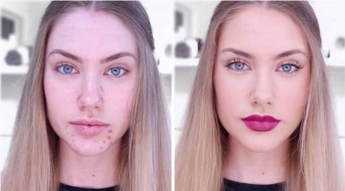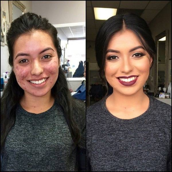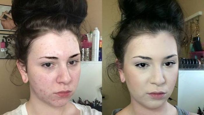 Как макияж позволяет барышням маскировать любые проблемы с кожей. Невероятные преображения одних и тех же барышень.