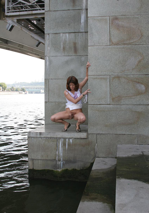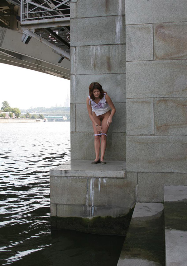Эта фото подборка посвящается для всех любителей подсмотреть и подглядеть за самым интимным процессом любой девушки и любой женщины. Кто то сюда не захочет даже заходить, мотивируя это тем, что смотреть такие снимки для него просто унизительно и противно, но я уверен что есть множество желающих увидеть тонкую теплую струйку мочи, которая так красиво вырывается из письки красивой женщины! Вот вам одна такая, правда немного зрелая, но как красиво она справляет нужду по маленькому под мостом, все очень наглядно и артистично) У 40 летней бабенки широко расставлены ноги, киска на виду во всей красе, и писсинг получился очень красивым благодаря тому что она писает с большой высоты!