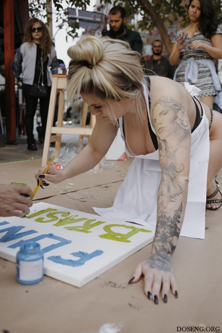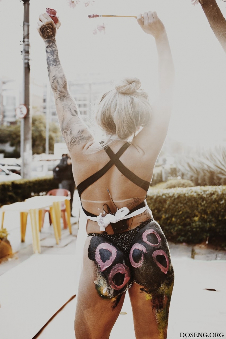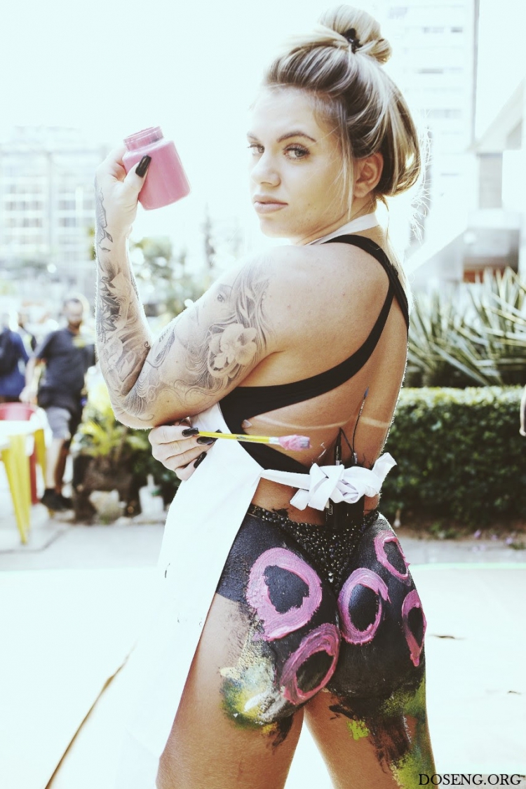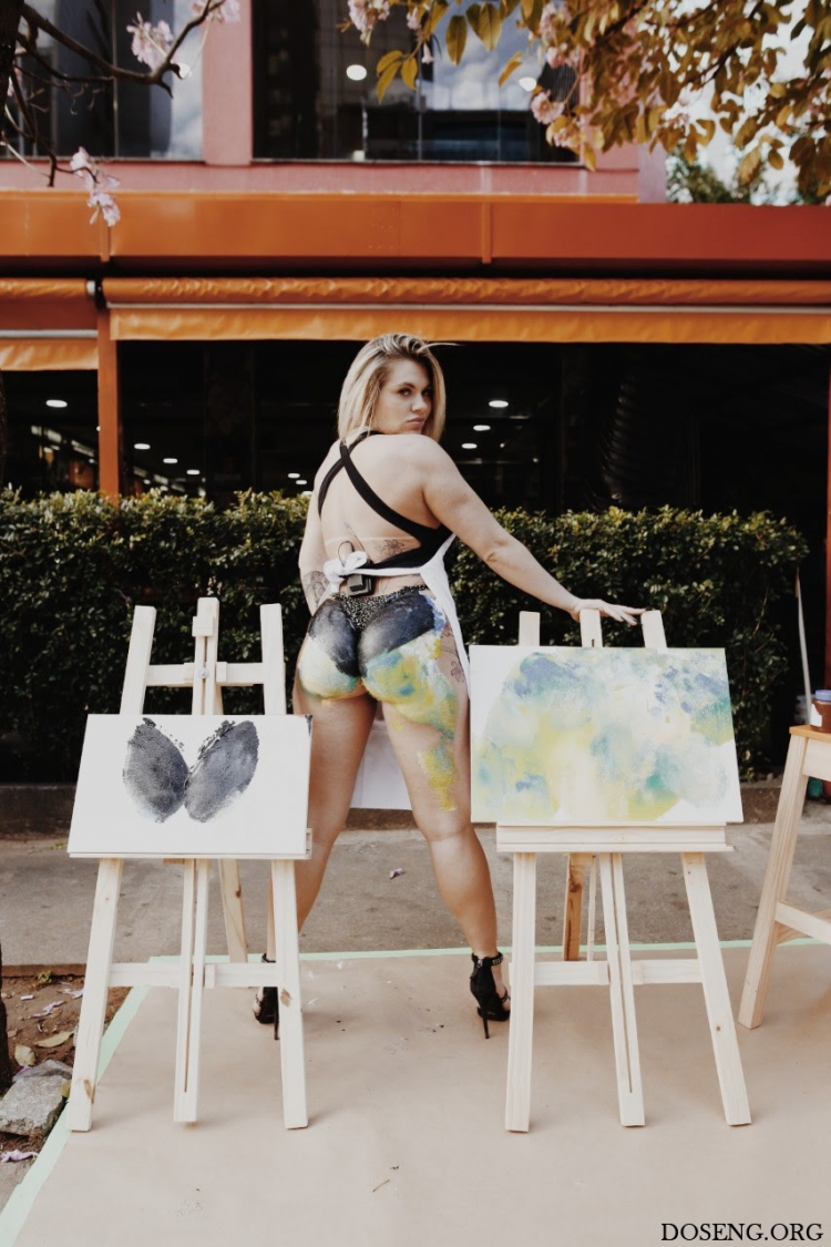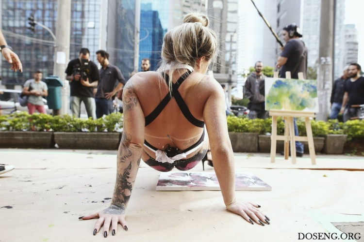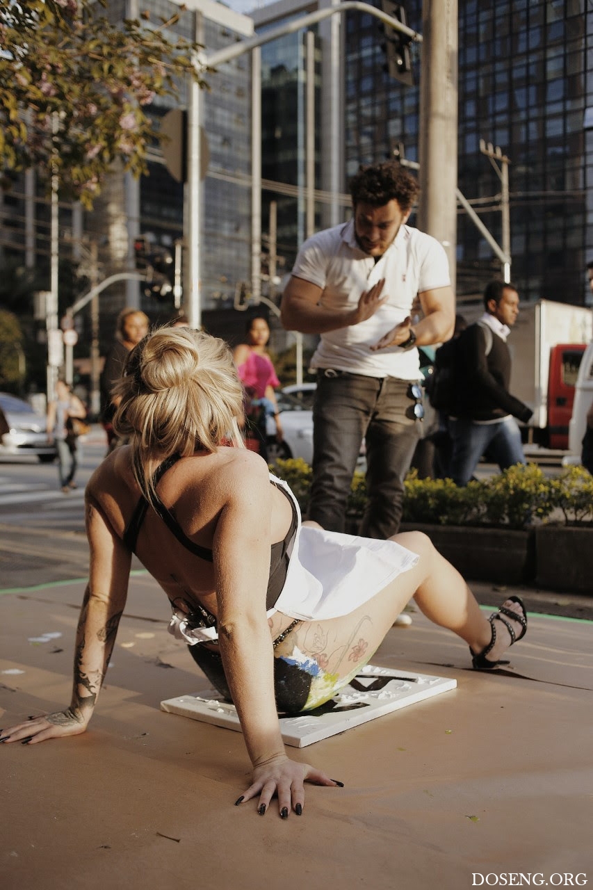 Необычную сцену могли следить прохожие на одной из основных улиц Сан-Паулу во вторник. Вице-чемпионка конкурса Miss Bumbum-2016 Данни Мораис(Danny Morais)мазала картинки при помощи своей знаменитой задницы.
