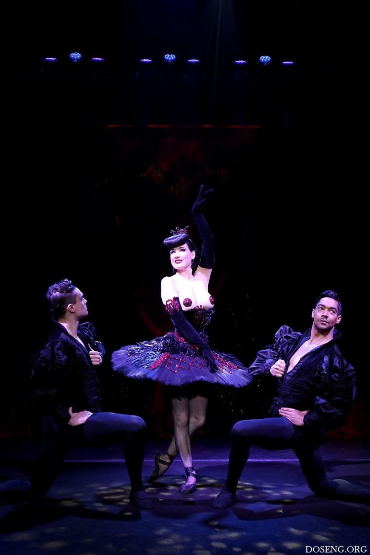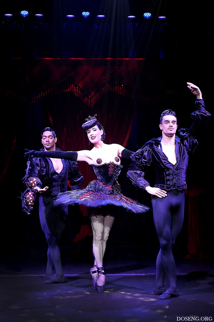 44-летняя американская танцовщица бурлеска, модель, художник по костюмам и актриса Дита Фон Тиз(Dita Von Teese)в своем шоу в театре Метрополитен в Нью-Йорке.