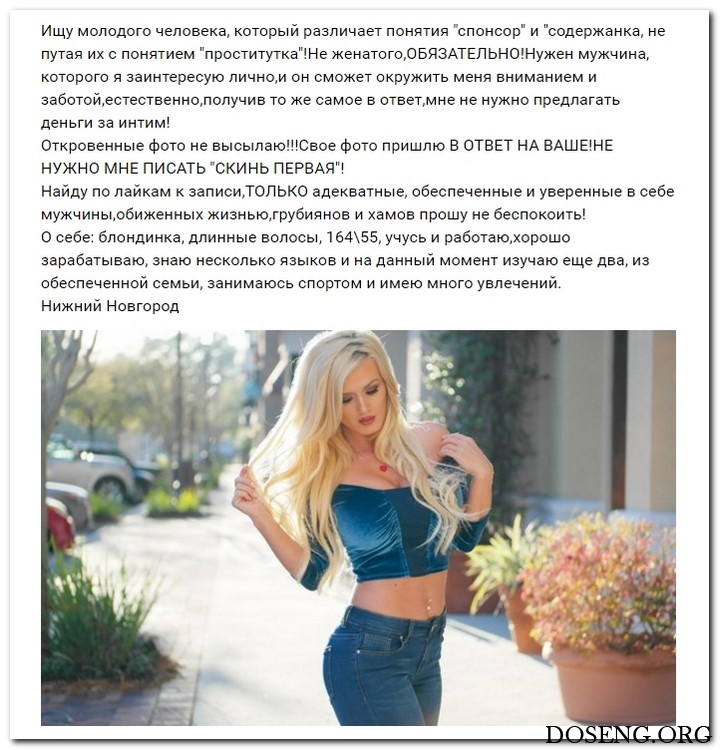 Эти наивные барышни алкают прекрасно жительствовать и ничего не ладить. Они гадают, что богатые спонсоры завидят их красу, и в очередность выстроятся, предлагая свою поддержка. Некоторые даже катают, что никого интима, им должны оплатить безукоризненно за милое общение.