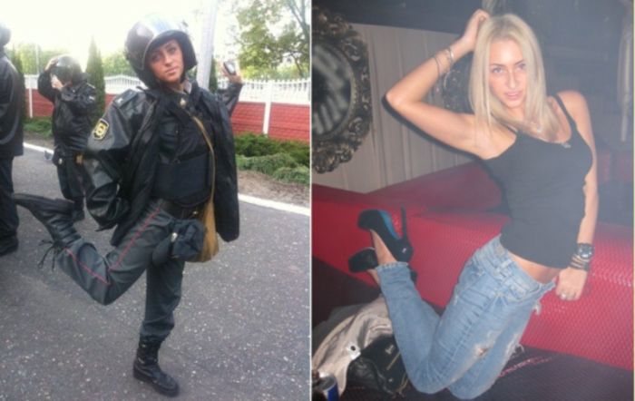 Надевая полицейскую форму, а затем снимая ее, они перевоплощаются в отборных кис,