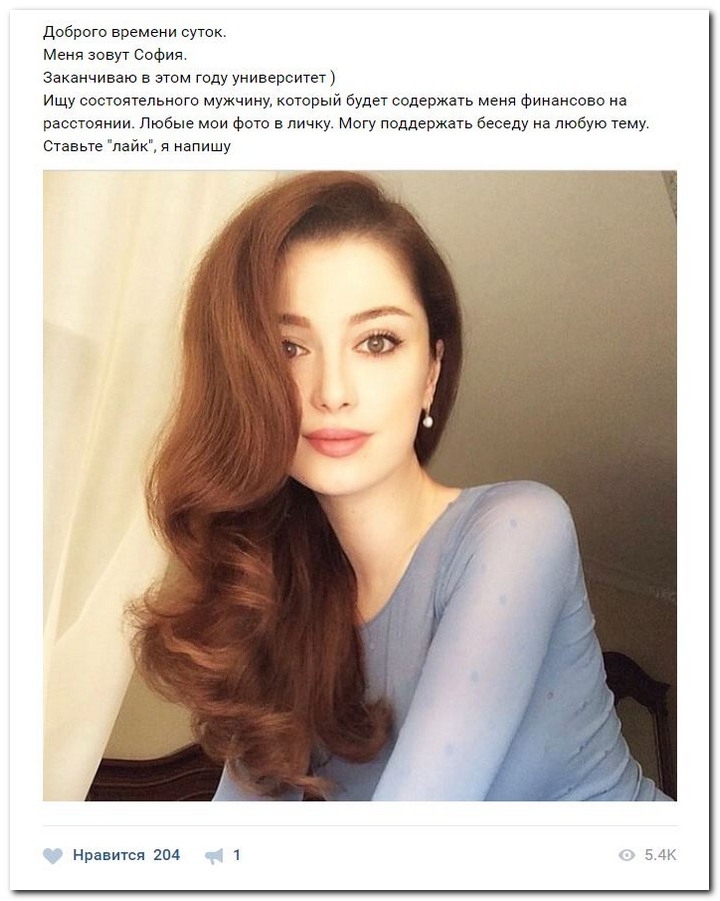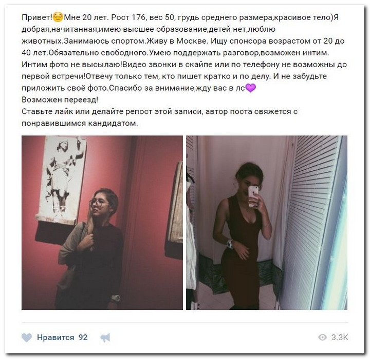 Эти наивные барышни алкают прекрасно жительствовать и ничего не ладить. Они гадают, что богатые спонсоры завидят их красу, и в очередность выстроятся, предлагая свою поддержка. Некоторые даже катают, что никого интима, им должны оплатить безукоризненно за милое общение.