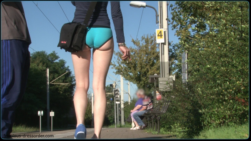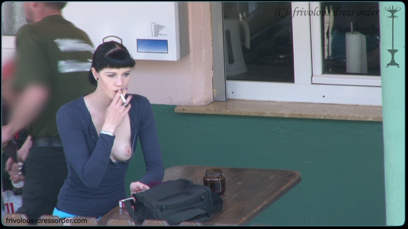 Прогулка в трусах с сиськой напоказ