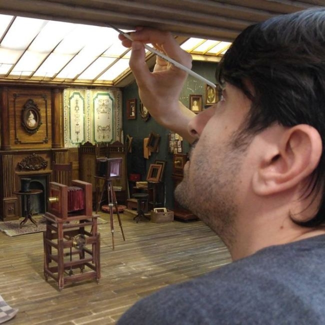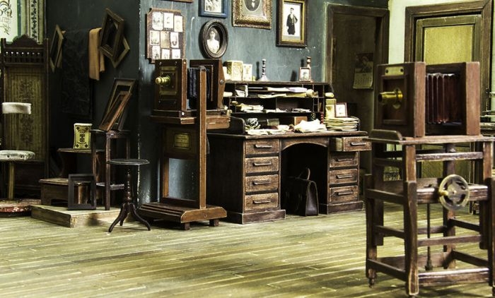 Перед вами диорама старой фотостудии, которую создал современный фотограф с золотыми руками. Просматривая старые фотографии, он сумел удивительно точно воссоздать интерьер фотостудии начала XX века. Особое внимание советуем обратить на невероятную детализацию даже самых миниатюрных объектов.