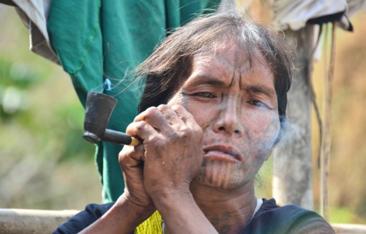 В отдаленном регионе горы Виктория в Мьянме существует умирающая традиция нанесения татуировок на лица женщин. Здесь обитают два племени - Мунн и Дай, и по узорам на лице можно определить, к какому из племен принадлежит женщина.
