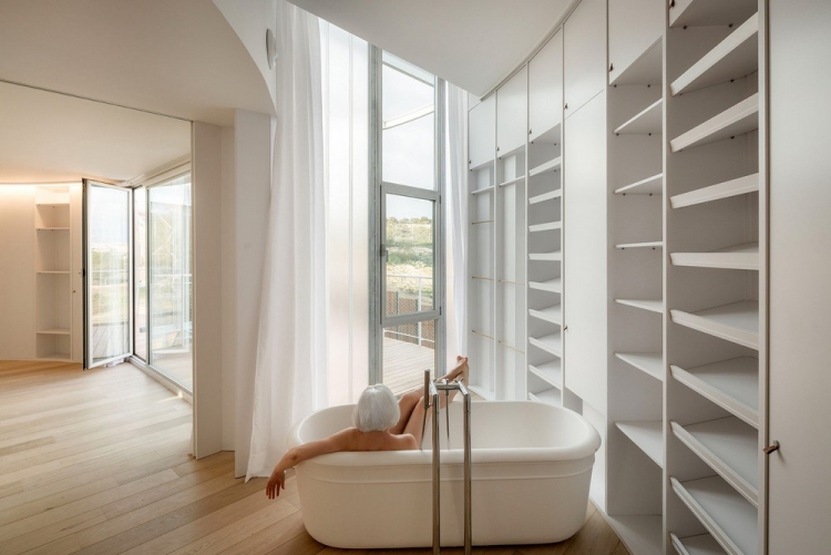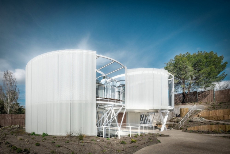 Одна состоятельная испанская семья решилась обзавестись постоянным жильем, которое бы в полной мере отвечало их внутреннему миру и отражало их образ жизни с постоянными путешествиями по всему миру. Для того чтобы воплотить все задуманное в жизнь пара обратилась в архитектурное бюро Z4Z4 AAA, благодаря которому и появилась резиденция Tobogan в Мадриде. Дом площадью 512 квадратных метров выполнен из двух блоков, расположенных на южном склоне и купающихся в лучах солнца. Один из уровней приподнят над землей, в результате чего складывается впечатление, что он парит в воздухе. В наполненном естественным светом доме находится сад, в результате чего даже здесь можно почувствовать единение с природой.