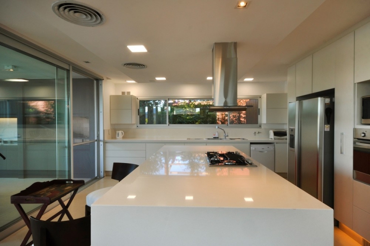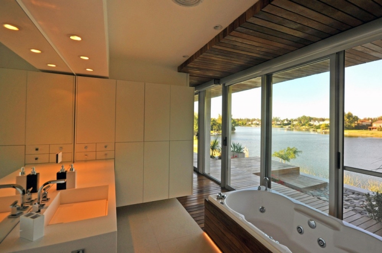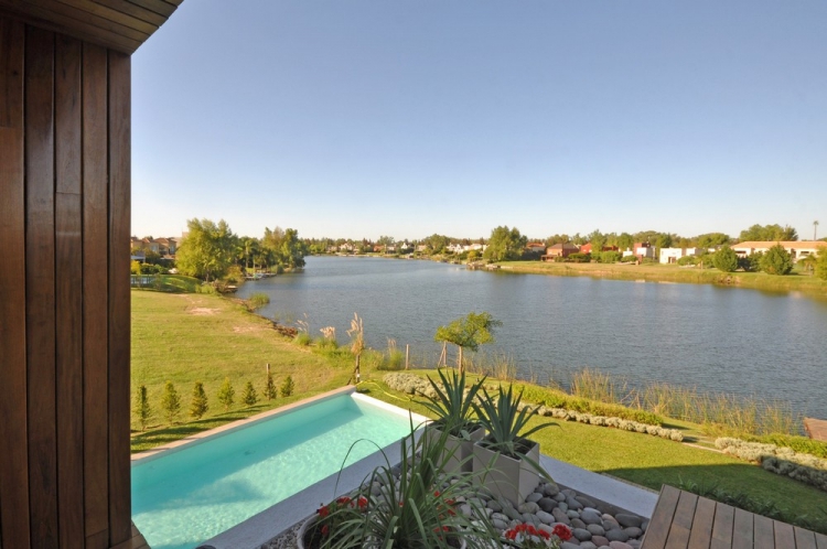 Проект резиденции Frame от архитекторов Vanguarda Architects расположен в Аргентине. Дом для постоянного проживания занимает прямоугольный участок с внутренним двориком в направлении близлежащего озера. Используя местные строительные материалы, были сформированы основные геометрические объёмы, которые стали прекрасным обрамлением для окружающего пейзажа за пределами помещения.
