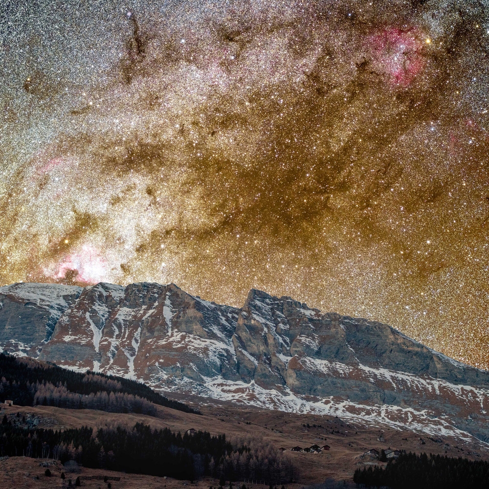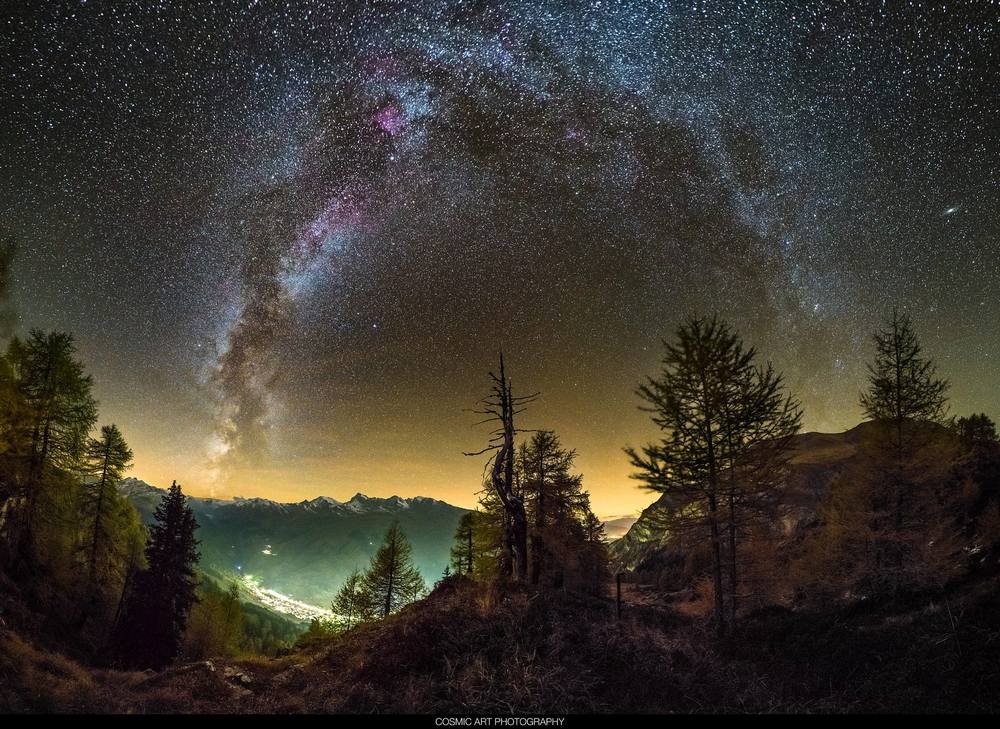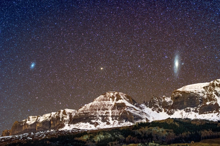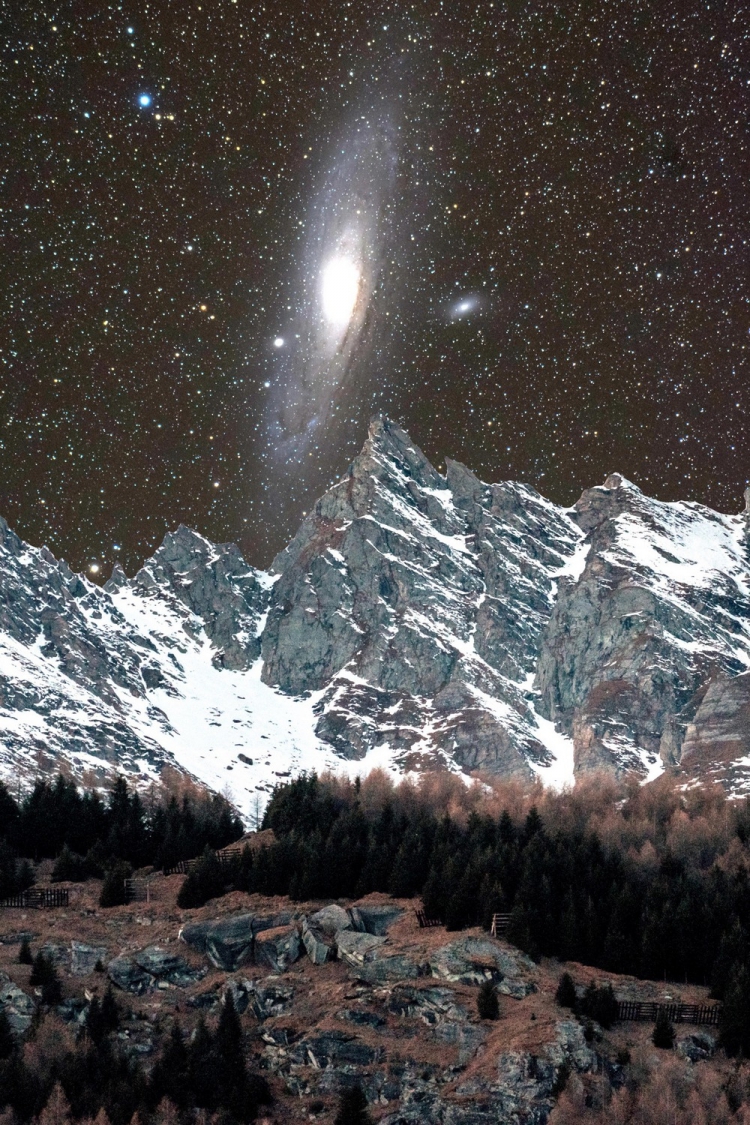Галактика Андромеды — ближайшая крупная Галактика к Млечному пути, ее можно увидеть сияющей над отдаленной деревней в Швейцарии. Фотограф Sandro Casutt сделал серию удивительных снимков в разные сезоны в течение года в долине Вальс, Швейцария. Эти кинематографические образы передают красоту галактики, сверкающей над живописными швейцарскими горами.
