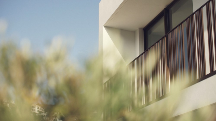 Размеры дома визуально расширяются за счёт добавления пространства сада, который служит в качестве идеального фона для виллы. Ландшафтный дизайн подчиняется той же концепции, что и конфигурация здания, следуя вытянутой форме участка и стремясь максимально вписать архитектуру в окружающий пейзаж.