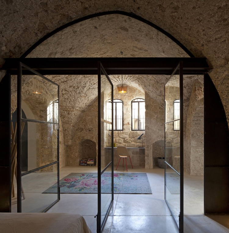 Проект Factory Jaffa был реализован студией Pitsou Kedem Architect в городе Яффо, Израиль. Частный дом представляет собой удивительное сочетание исторического фасада и современного интерьера. Каменные стены с потрясающе красивыми арками и сводами сочетаются с бетонными вставками, стеклянными перегородками и парящей в воздухе лестницей, а лаконичная мебель украшает пространство площадью 180 кв. метров.