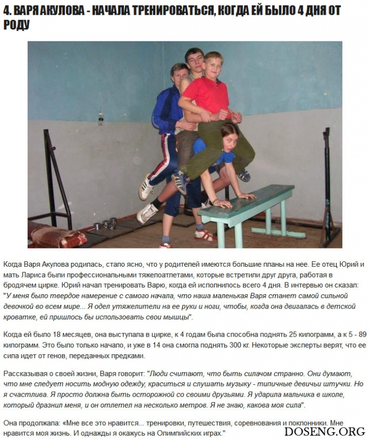У двоих из списка есть брат или сестра, которые тоже могут называться силачами. Значит, на самом деле вы прочтете о 17 детях, которые заставят вас сожалеть о пропущенных по утрам тренировкам. У некоторых из них даже есть такие дерзкие прозвища, как Маленький Геркулес, Маленький Арни и Супердевочка!