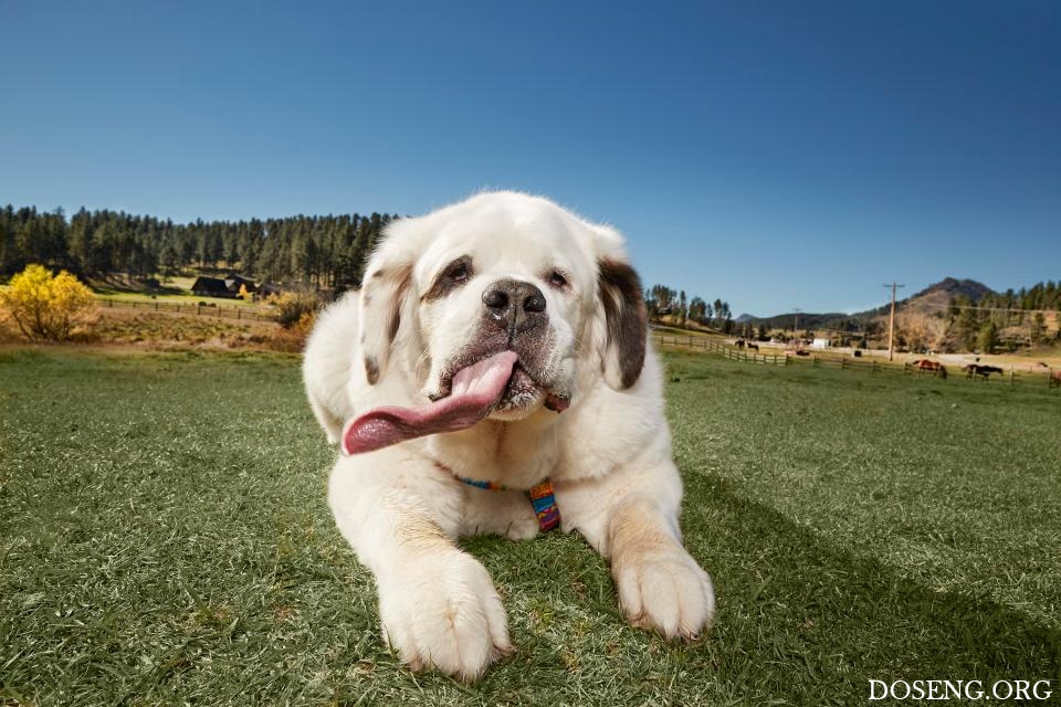 8-летний сенбернар Mochi из Су-Фолс, штат Южная Дакота, США, попал в Книгу рекордов Гиннесса, как обладатель самого длинного языка. Длинна языка собаки составляет 18.58 см. Хозяйка песика Карла Рикерт говорит, что когда люди видят язык собаки, непременно улыбаются.