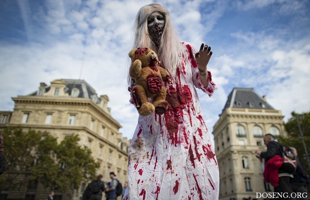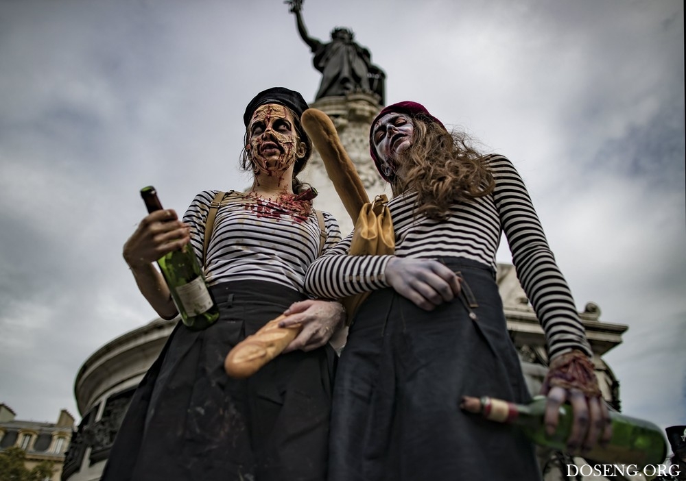 Всемирный день зомби 2017 (World Zombie Day 2017). В этот день люди переодеваются в зомби, мертвецов и другую нечисть, затем в таком виде выходят на улицы городов. Мероприятие берет начало в 2006 году, сегодня оно проходит в более чем 50 городах. Предлагаю взглянуть, как зомби бродили по улицам Парижа и Лондона.