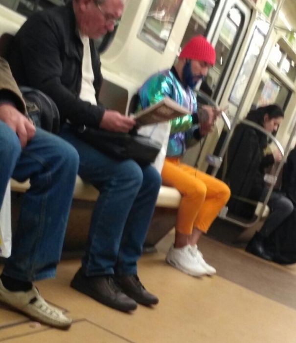 Среди огромного числа пассажиров метрополитен можно встретиться весьма забавных персонажей, какие дивят своим наружным обликом. У этих людей особое ощущение манера, позволяющее им выделиться на фоне других, чего они, судя по всему, и домогаются.