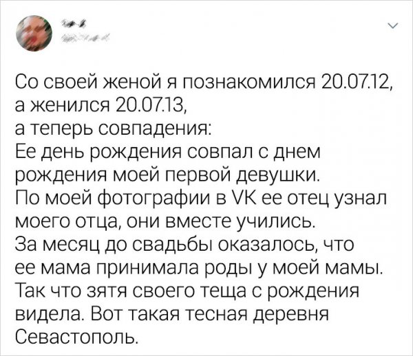 Звучит безумно, однако будто мы жительствуем в матрице. Периодически можно замечать, будто система вручает сбой и происходят диковинные совпадения. Кажется мы избрали не ту таблетку, потому что в эти случайности будет сложно поверить. Давайте посмотрим подборку неожиданных совпадений, какие приключились с авторами этих карточек.