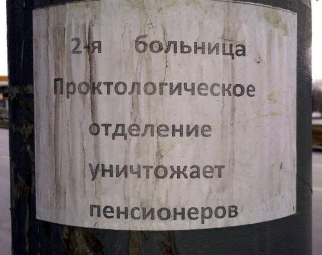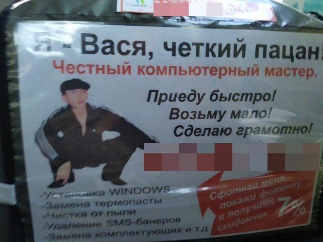 Выходя на улицу, всякий из нас натыкается на огромное численность неодинаковых информационных и рекламных объявлений. Иногда их составители особенно норовят сделать объявления более остроумными, а временами попросту не кумекают, что катают, оттого и получаются подобные фейлы.