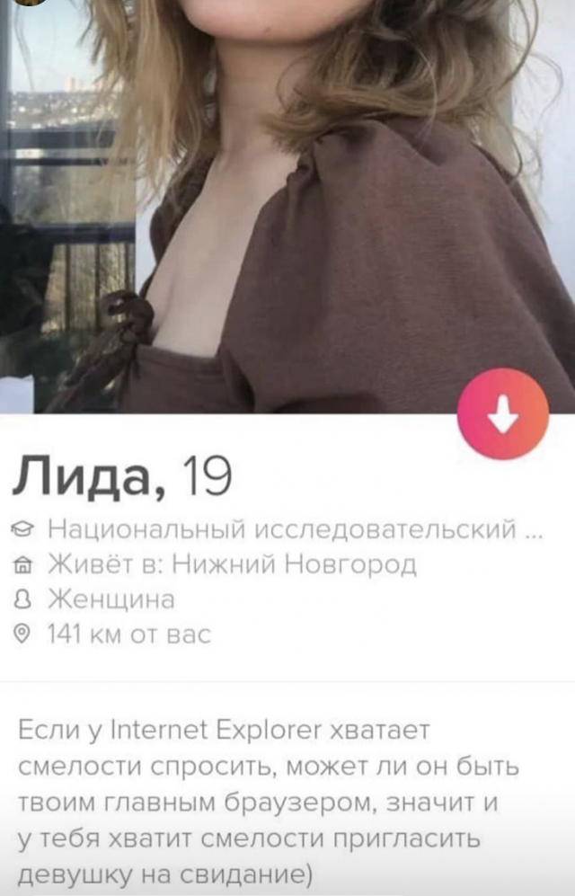 Когда ты не можешь найти амуры в реальной жизни, то двигаешь в онлайн. А там - нескончаемое бездна людей, у каких свои вкусы, взоры, предпочтения... И вот тебя уже выбирают по фото или по подписи под ним. Поэтому надобно быть креативным и безбоязненным.