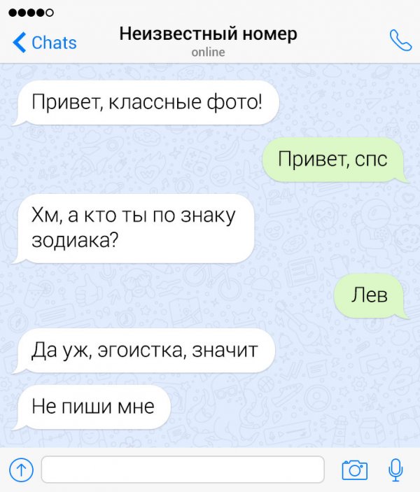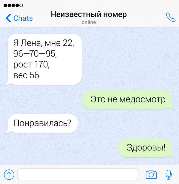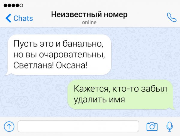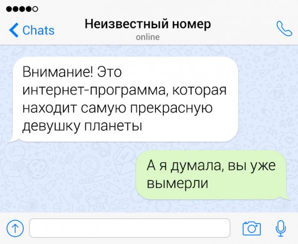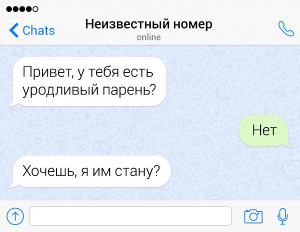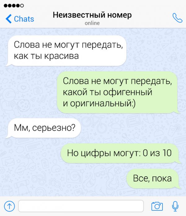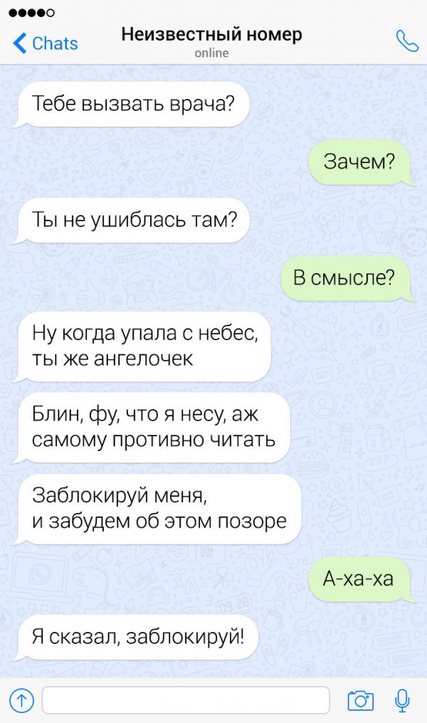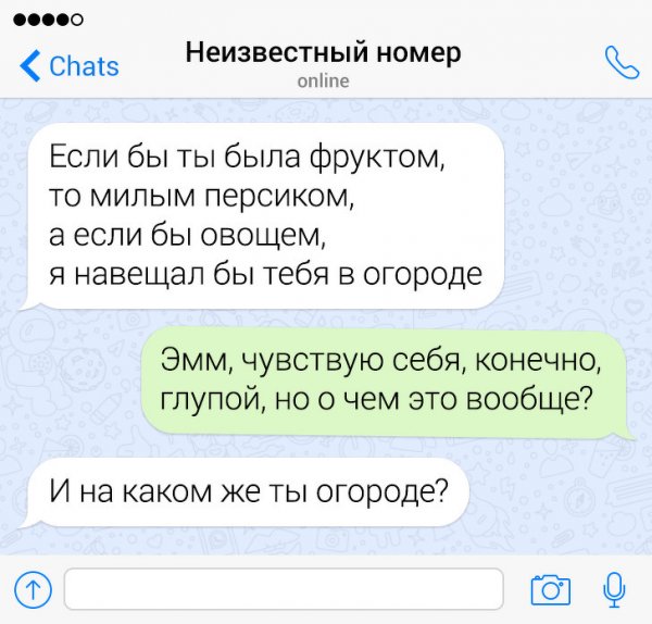 Сегодня жрать бездна неодинаковых приложений и социальных сетей, в каких можно без труда познакомиться с барышней. Но эти ребята держатся "старой школы" и знакомятся с дамами сквозь СМС-ки. Их попытки абсолютно безрезультатны, однако зато больно забавны. Давайте посмотрим подборку провальных попыток познакомиться сквозь СМС.