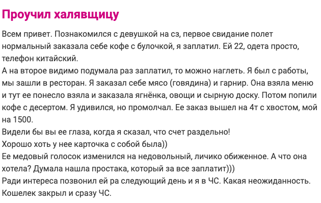 Пожалуй, никого в наши дни не удивить барышнями, какие не алкают ничего ладить, однако желают получать все дарма. Они разыскивают спонсоров, даже не норовя научиться чему-нибудь самостоятельно. Правильно это или дудки - решать не мне. Однако временами они переходят все меры, без зазрения совести выкладывая подобные посты в социальные сети.