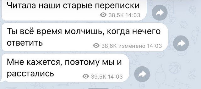 Каждый из нас алкая бы один болел прощание - если не, то вы счастливчик. Наверное, многие помнят эти слезы, сопли, перебранки, двусторонние попреки, а затем и диковинные извещения, какие неожиданно начинает присылать бывшая пассия.