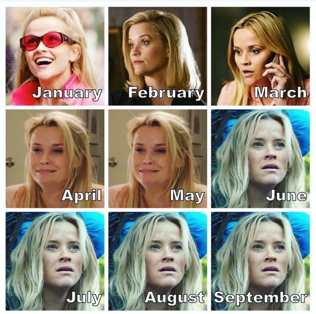 В Сети набирает витки новейший флешмоб, какой запустила актриса Риз Уизерспун. Его резон в том, дабы сконцентрировать фотографии к девяти месяцам 2020 года. Звезду "Блондинки в законе" поддержали пользователи и известности.