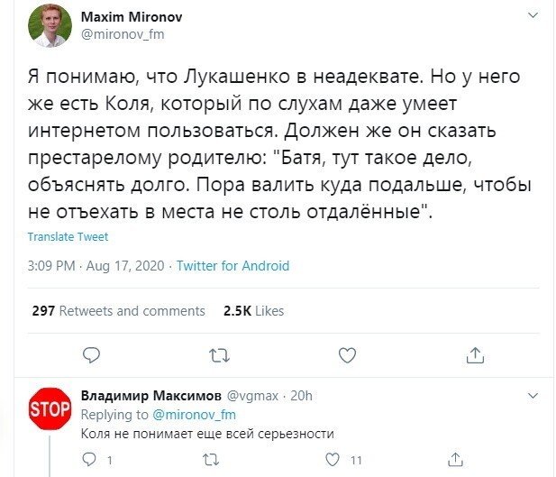 Николай Лукашенко в остатнее времена стал популярнее своего родителя. В минувшие выходные он тоже отличился - взял в десницы машина и взялся на публике в абсолютной военной амуниции. Пользователи не могли не отметить этот факт и пошутили про сына президента Беларуси Александра Лукашенко. Кстати, в сети его величают "сексихат картофелька".