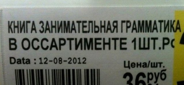 Ох, будто же забавно декламировать эти ценники, надписи, рекламные плакаты и слоганы!