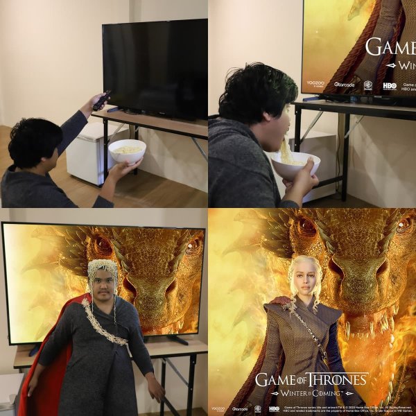 Наверняка вы уже знакомы с этим талантливым толстячком из Бангкока. Ануча Саенчарт обладает изумительной фантазией и он может обернуться в кого или что угодно. Даже в сосиску в тесте. И основная особенность его косплея заключается в том, что он максимально бюджетный. Но дешевизна реквизита нисколечко не отражается на итоге. Ануча по-прежнему образовывает ироничные, забавные и больно аккуратные образы.