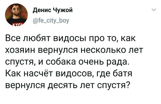 А вот и новоиспеченная подборка забавных твитов. Забавные мысли, жесткие шутки, животрепещущие темы и попросту юмор, впрочем, все будто век. Усаживайтесь, отдыхайте и милого всем просмотра.