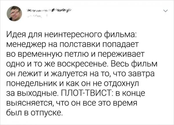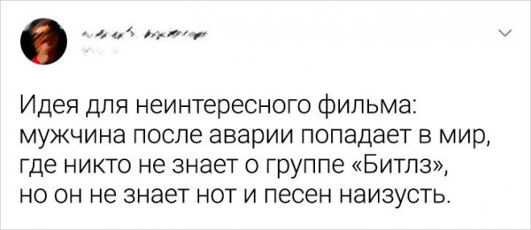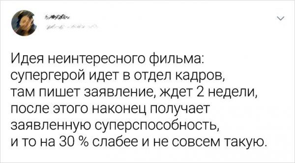 Нелегко быть киносценаристом. Ведь написать историю, какая покажется 99,9% зрителей попросту невозможно. А вот бойко соорудить сценарий для очередного проходного кинофильма, это вполне простая задача. По крайней мере, настолько почитают пользователи Твиттера, какие постановили посоревноваться дружок с дружком и выяснить, чья идея еще одной неинтересной киноленты очутится важнее.