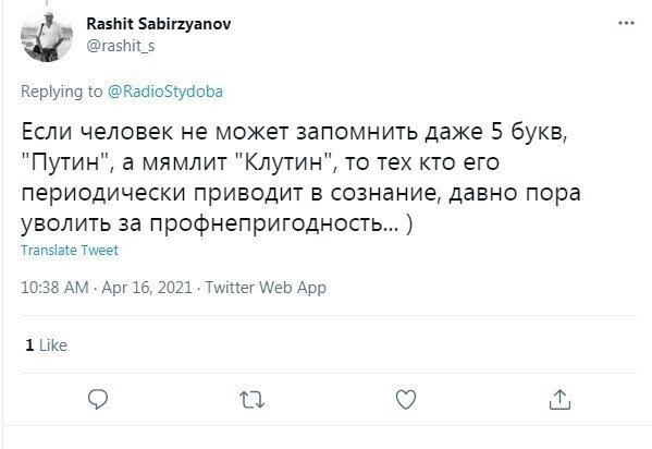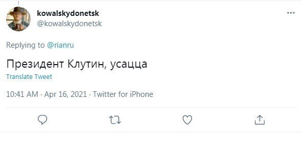 Ранее сообщалось о том, что президент Соединенных Штатов Америки Джо Байден выступал в Белом доме, высказываясь о санкция и об взаимоотношениях с Российской Федерацией. В ходе своего монолога политик обмолвился и наименовал российского президента Владимира Путина "Клутиным". И вот, будто на это отреагировали кое-какие россияне в социальных сетях.