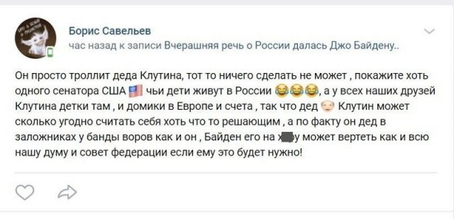 ODvinsk » Фото Приколы » Реакция россиян на то, что Джо Байден назвал "Клутиным" (15 фото)