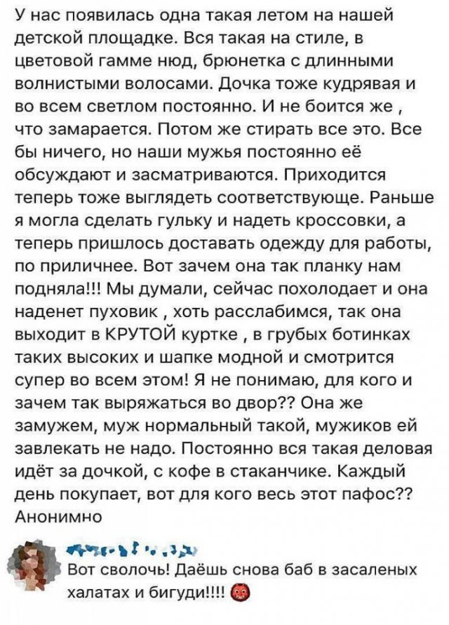 "Яжематери" - настолько величают дам, какие, опроставшись ребятенка, начинают спрашивать к себе не всего терпимого взаимоотношения, однако и неодинаковых дармовых услуг, скидок на товары и прочего. Само собой, таковое поведение будит лишь издевки со сторонки пользователей социальных сетей.