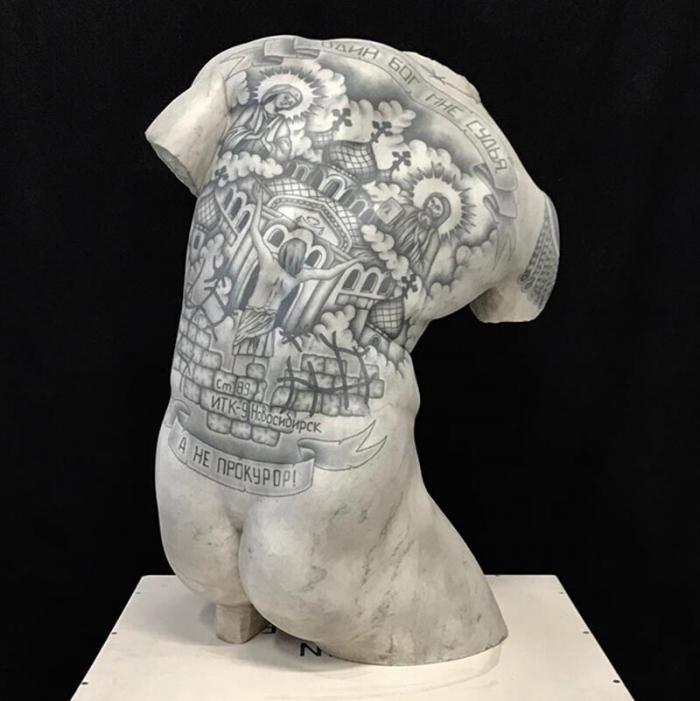Итальянский художник и ваятель Фабио Виале(Fabio Viale)постановил свести два невообразимых облика искусства — скульптуру и татуировку. В настоящем посте вы найдете татуировками в восточном манере и тюремные наколки, навитые артистом на поверхность скульптур.