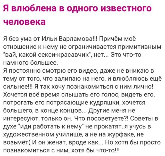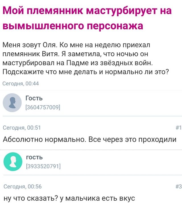 А вот и новоиспеченные истории от диковинных барышень, какие разыскивают житейской мудрости на бабских форумах. Парни туда тоже заглядывают и их спросы не менее безумны. Что творится у них в головах - загадка природы. Ну что же, вручайте посмотрим, что их волнует на этот один.