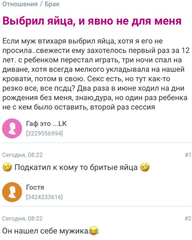 Ну что же, настало времена для безумных историй и ненормальных спросов с бабских форумов. Понять, что происходит в их головах - безотносительно невыполнимая задача. Но попытаться все-таки стоит. Давайте поглядим, что новоиспеченного эти бедняжки рассказали на этот один.