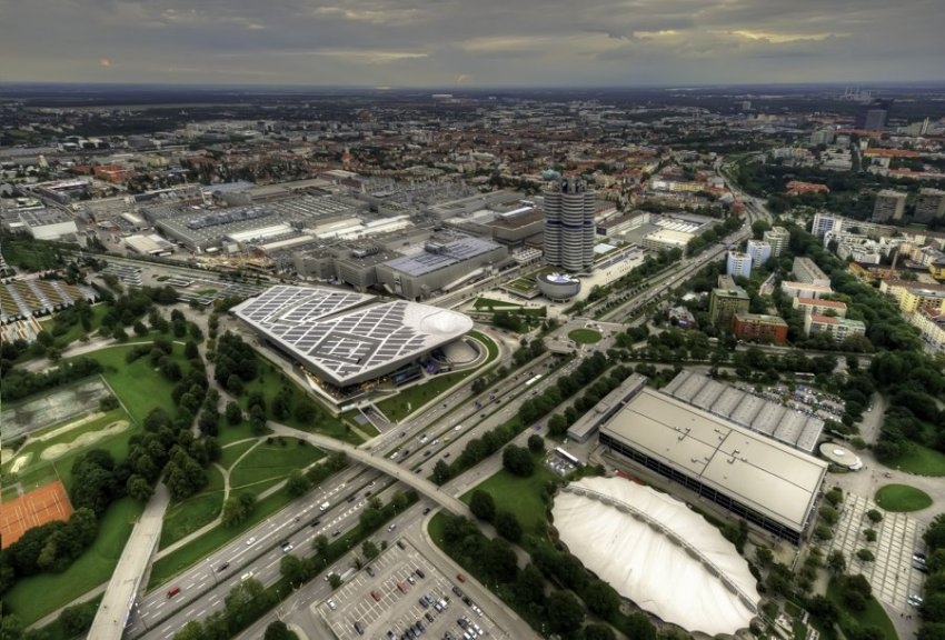 Здание штаб-квартиры BMW в Мюнхене по замыслу архитекторов должно напоминать четырёхцилиндровый двигатель