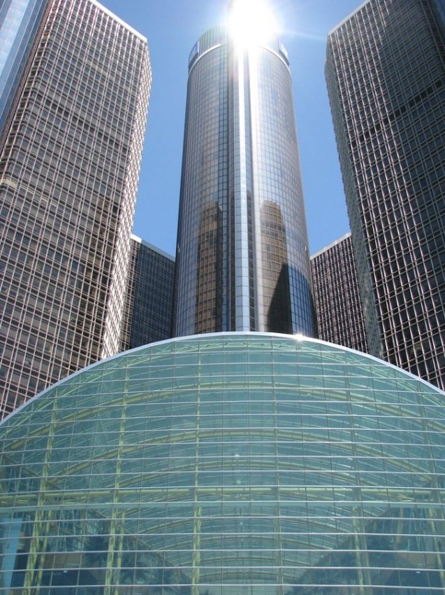 Комплекс зданий Renaissance Center, состоящий из трех башен-небоскрёбов, занимает штаб-квартира компании General Motors.