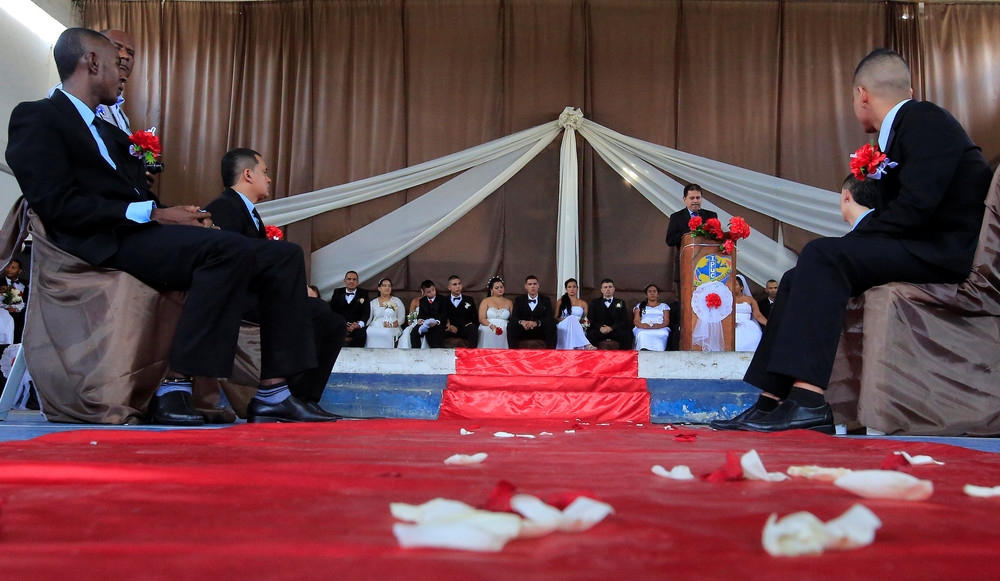 19 августа состоялась массовая церемония бракосочетания в тюрьме Карсель Вилья-Эрмоса в Кали, Колумбия. 17 мужчин-заключенных заключили брак со своими вторыми половинками в этот день. Фотограф Салдарриага Джейме (Jaime Saldarriaga) посетил это мероприятие и сделал несколько снимков.