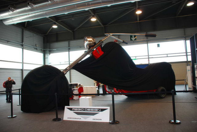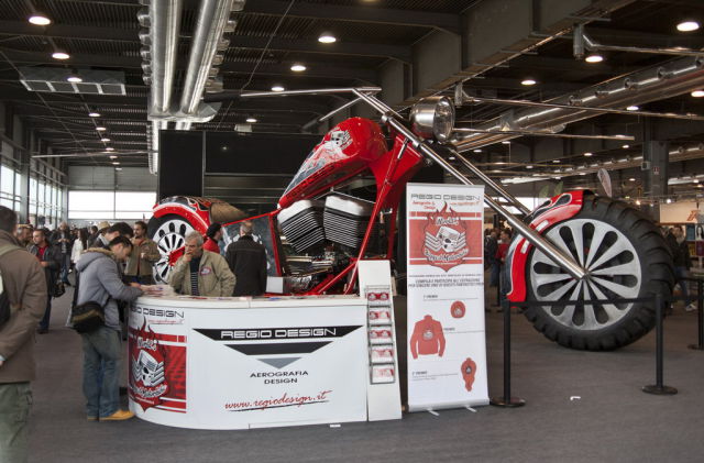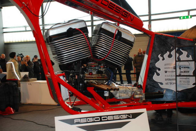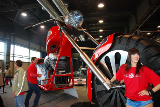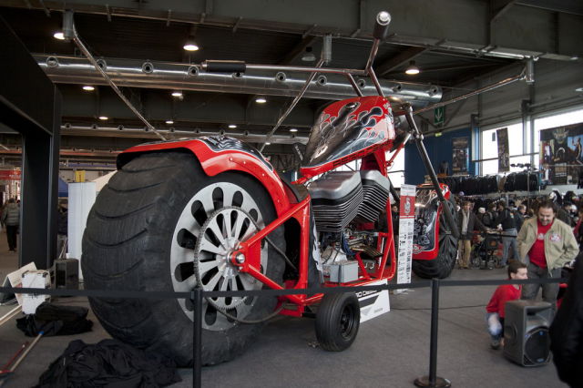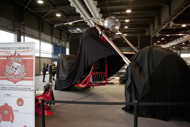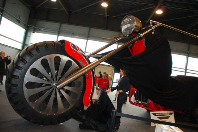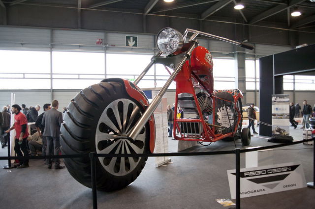 Работа дизайнера Фабио Реджиани. Высота мотоцикла составляет 10 метров, он оснащен 5,7-литровым двигателем V8 мощностью 280 лошадиных сил.