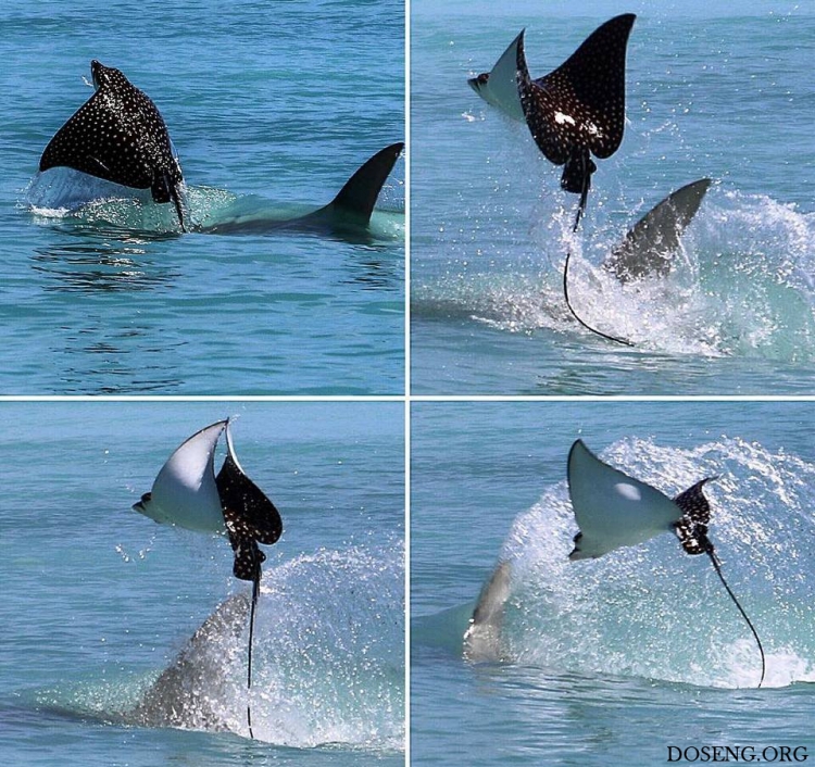 Турист из Амстердама Ральф де Бие (Ralph De Bie) возвращался из путешествия близ острова Zapatila в Панаме, когда он с друзья увидел морскую битву и запечатлел ее на камеру. Орляковый скат практически взлетел над водой, спасаясь от острых зубов акулы-молота. Скат выпрыгнул на пляж, а акуле не оставалось ничего другого, кроме как уплыть в поисках другой добычи.